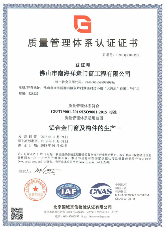 廣東祥意門窗工程有限公司是一家專注鋁合金門窗工程及門窗加工、制作的優(yōu)質企業(yè)。公司憑著精湛的技術服務和優(yōu)良的售后服務,已成功完成多個優(yōu)質項目。 同時,公司進駐國際市場,現(xiàn)已順利完成多個進出口項目。公司不斷的開拓與發(fā)展,現(xiàn)已成為集生產(chǎn)制造、設計咨詢、技術研發(fā)、銷售、安裝、維護六大功能于一體的系統(tǒng)優(yōu)質誠信企業(yè)。